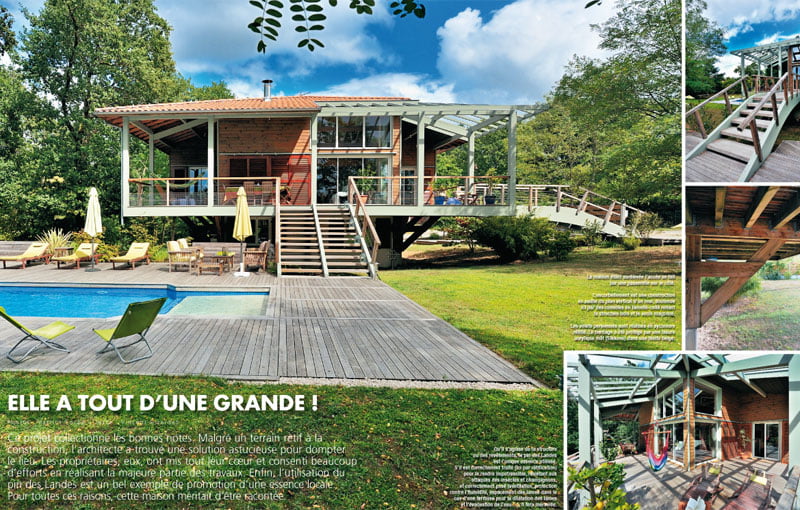 Le constructeur de maisons en bois La Résinière bénéficie d’une solide réputation de sérieux et de compétence. Voilà pourquoi les propriétaires se sont tournés vers l’entreprise Girondine. Ça et une belle histoire d’amitié entre deux copains d’enfance. Douze ans après la maison n’a pas pris une ride.