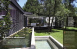 C’est un objet à habiter qui ménage son terrain, un lieu de vie surprenant installé dans un paysage sauvage. Mêlant le bois, l’acier et le métal, la forme articulée de la villa serpente entre les arbres, s’étire de tout son long pour ponctuer sa course par un porteà- faux surplombant l’étang. Un ensemble contemporain, labellisé bâtiment basse consommation et parfaitement intégré au site.