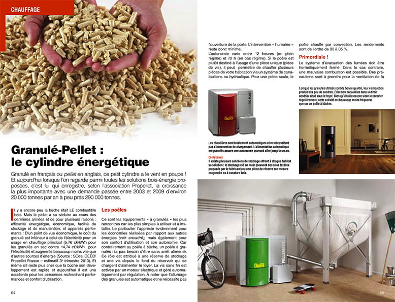 Granulé en français ou pellet en anglais, ce petit cylindre a le vent en poupe ! Et aujourd’hui lorsque l’on regarde parmi toutes les solutions bois-énergie proposées, c’est lui qui enregistre, selon l’association Propellet, la croissance la plus importante avec une demande passée entre 2003 et 2009 d’environ 20 000 tonnes par an à peu prés 290 000 tonnes.