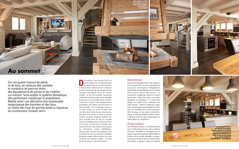Sur ces quatre niveaux de pierre et de bois, on retrouve des matières et matériaux de premier ordre, des équipements de pointe et du mobilier sur-mesure. Sans oublier le système domotique très performant installé par le propriétaire. Réalisé selon une démarche éco-responsable respectueuse des hommes et des lieux, ce chalet très haut de gamme porte la signature du constructeur Grosset Janin.