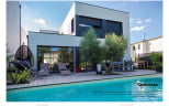 Avec sa belle piscine à l’avant et son environnement boisé, ce grand cube est une invitation aux vacances et à la tranquillité.