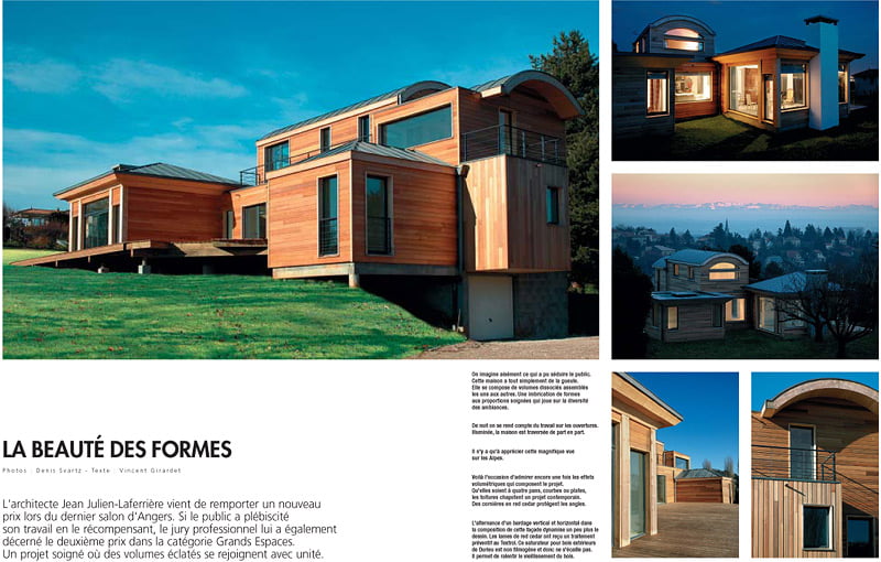 L’architecte Jean Julien-Laferrière vient de remporter un nouveau prix lors du dernier salon d’Angers. Si le public a plébiscité son travail en le récompensant, le jury professionnel lui a également décerné le deuxième prix dans la catégorie Grands Espaces. Un projet soigné où des volumes éclatés se rejoignent avec unité.