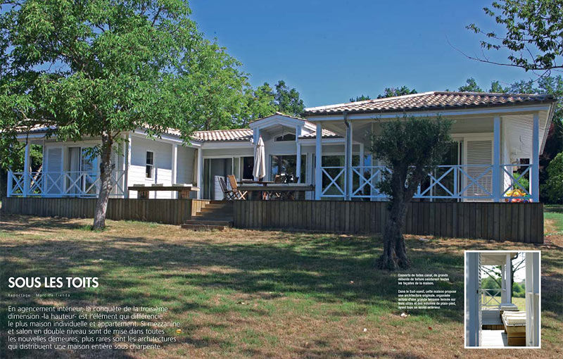 En agencement intérieur, la conquête de la troisième dimension -la hauteur- est l’élément qui différencie le plus maison individuelle et appartement. Si mezzanine et salon en double niveau sont de mise dans toutes les nouvelles demeures, plus rares sont les architectures qui distribuent une maison entière sous charpente.