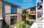 La mixité des matériaux employés, la forme du projet sur ce petit bout de terrain et ce patio verdoyant sont les qualités principales de cette réalisation.