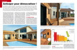 La rencontre avec Michel Meunier est venue enrichir ce débat. Albedo, son bureau d’études thermiques a réalisé une modélisation dynamique des apports solaires pour le compte d’un promoteur immobilier dans le cadre d’un petit lotissement. Les résultats, dont nous publions quelques extraits, sont passionnants. Le principe consiste à modéliser sur ordinateur un volume habitable, puis à « faire tourner » un programme de données météorologiques locales. On mesure ainsi les apports solaires directs selon les formes architecturales et les orientations géographiques. Entre le projet initial et la version définitive, les gains sont impressionnants. Grâce à une optimisation de l’ensoleillement, les besoins en chauffage sont divisés par deux. Ils se traduisent par une épaisseur moindre d’isolants et des équipements de chauffage dimensionnés à la juste proportion. L’outil informatique a permis aussi de positionner précisément toutes les maisons sur la parcelle pour limiter les ombres directes. On peut imaginer sans mal une généralisation de ce système qui permettrait de quantifier précisément les apports solaires et les besoins en chauffage de chaque projet. Et pourquoi pas, dans quelques années, une indication de la « puissance solaire disponible » ajoutée à la surface et au prix d’un terrain à vendre ? Car, qu’il s’agisse des apports directs ou sous la forme de panneaux photovoltaïques et chauffe-eau, les bénéfices d’une orientation plein sud face au soleil vont s’amplifier avec les progrès technologiques attendus.