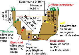 entierrement daccord et puis les eaux uséa a 120 cm faudra m expliquer ; j'ai pas vu cela souvent derniérement 40 cm.. et tout dans la meme tranché et vous pensez que le type du consuel va prendre sa béche et son rateau pour vérifier sous l empierement, en reve peut etre , car pour lui se serait un cauchemar en mocassin vernis…