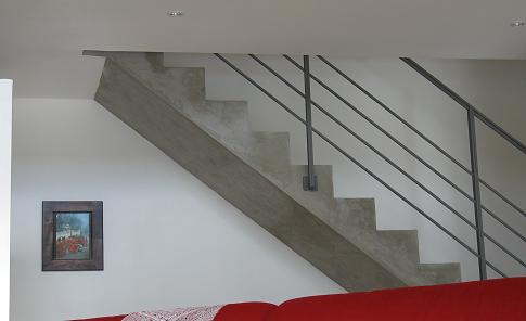 Nous souhaitions installer un escalier "quart-tournant" en béton, essentiellement pour l'esthétique (j'adore l'effet de contraste des matières, le sol sera en parquet brut et les mur en placo). Dans ce genre :