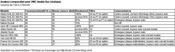 J'ai donc fait une tableau comparatif en prenant en compte les éléments techniques les plus importants de mon point de vue (rendement, puissance consommée, niveau sonore, filtration, régulation ..). Ces infos viennent simplement des specs fabricants trouvées sur les différents sites. Avant de me lancer je souhaiterai :
