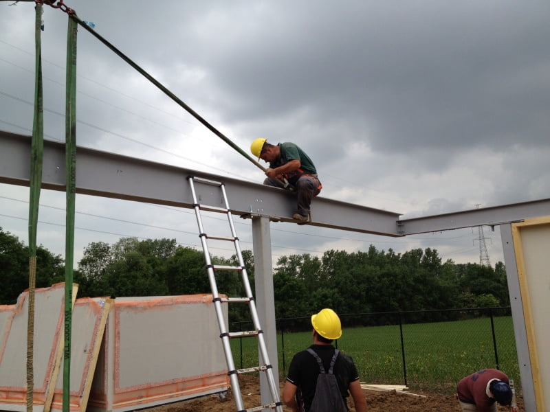 oui ta raison si tu fait allusion a la grosse section métallique il y a le plancher qui vient s'emboiter dedans en suite isolation en plancher 200mm et une isolation par extérieur …en tout le cas on diminue au maximum les ponts thermiques