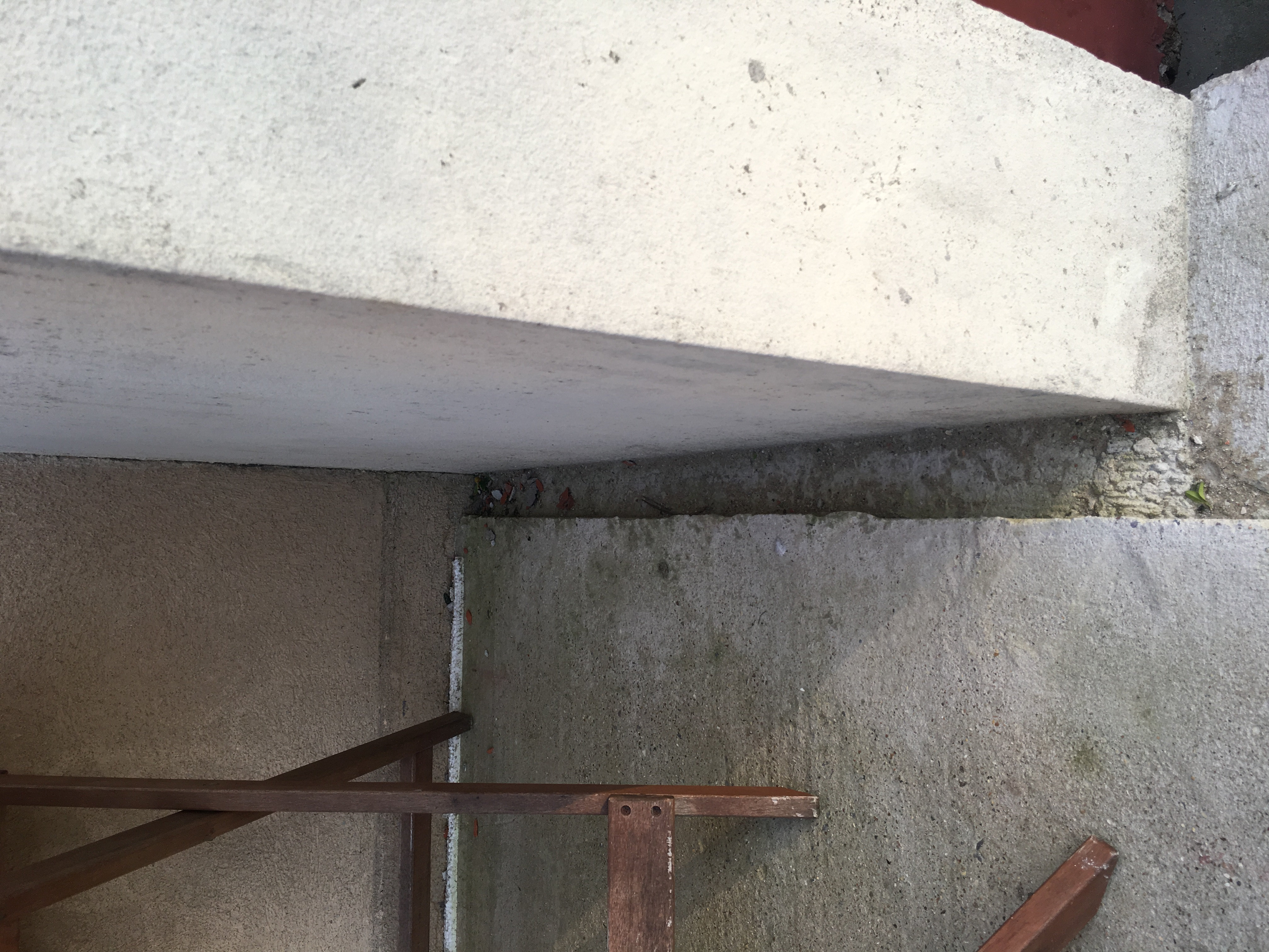 Ne pouvant venir me fixer contre le mur mitoyen du voisin, j'ai un espace de 14cm sur la gauche et de 7cm sur la droite. Sur ces deux espaces, il y a un béton de propreté avec une pente (aucune fondation dessous) qui permet à l'eau de s'écouler dans le jardin.