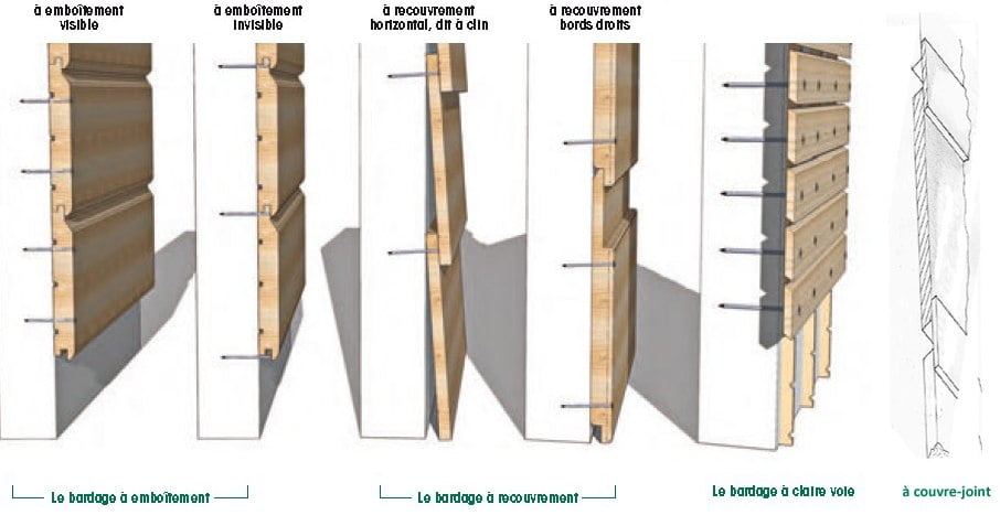 - Le nombre de pointe : Pour le moment je suis parti comme sur ce dessin, à savoir un clou en haut caché sous la lame du dessus. Mais mon bardage est pas très "beau" et j'ai des lames qui rebique à fond. J'ai peur que ça s'intensifie avec le temps, devrais-je prévoir 2 pointes comme sur ce dessin histoire de la plaquer contre ?