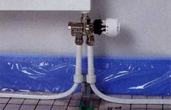 J'ai vu un systeme de chauffage combinant en meme temps dans la meme piece, un plancher chauffant et puis un radiateur avec vanne thermostatique.